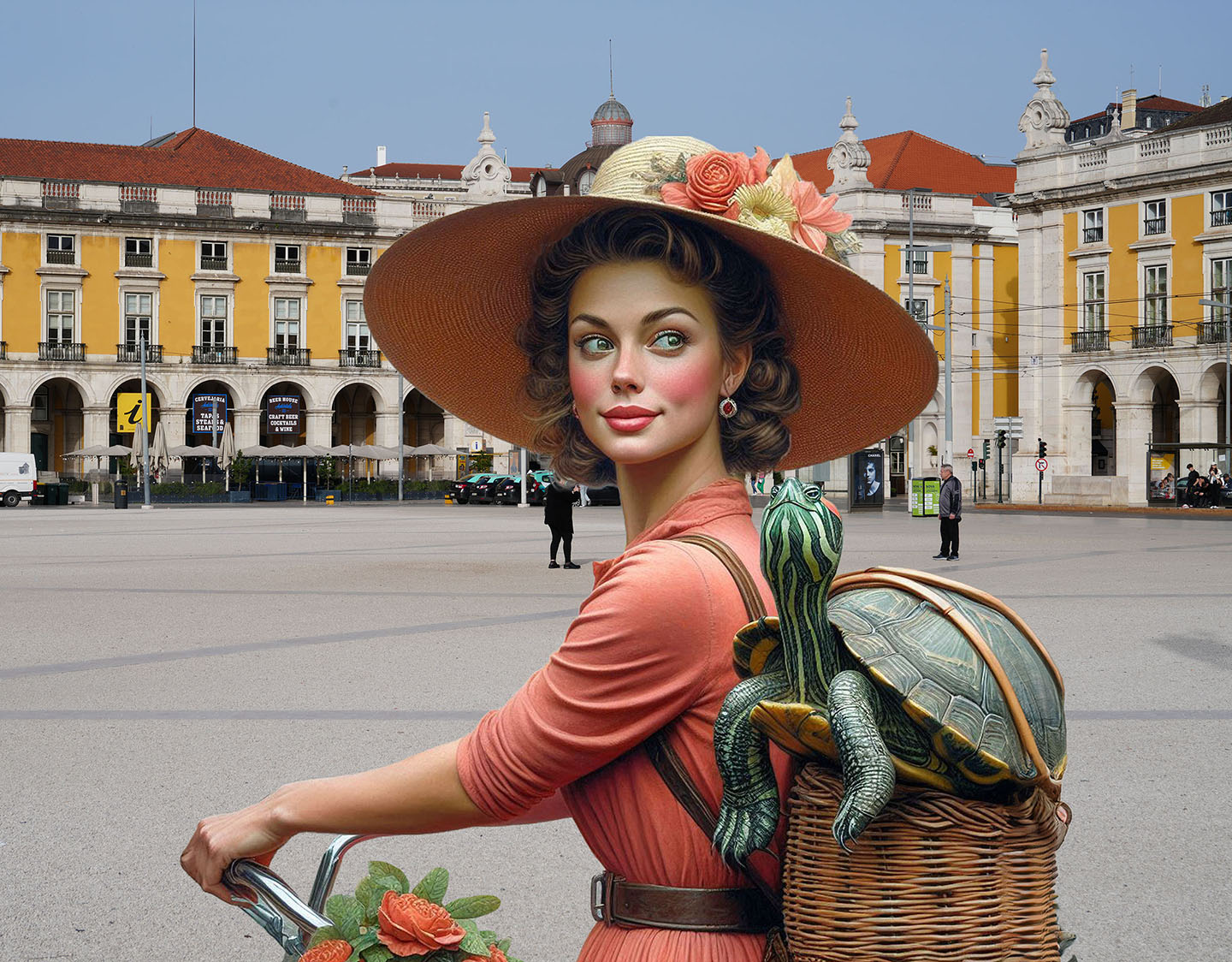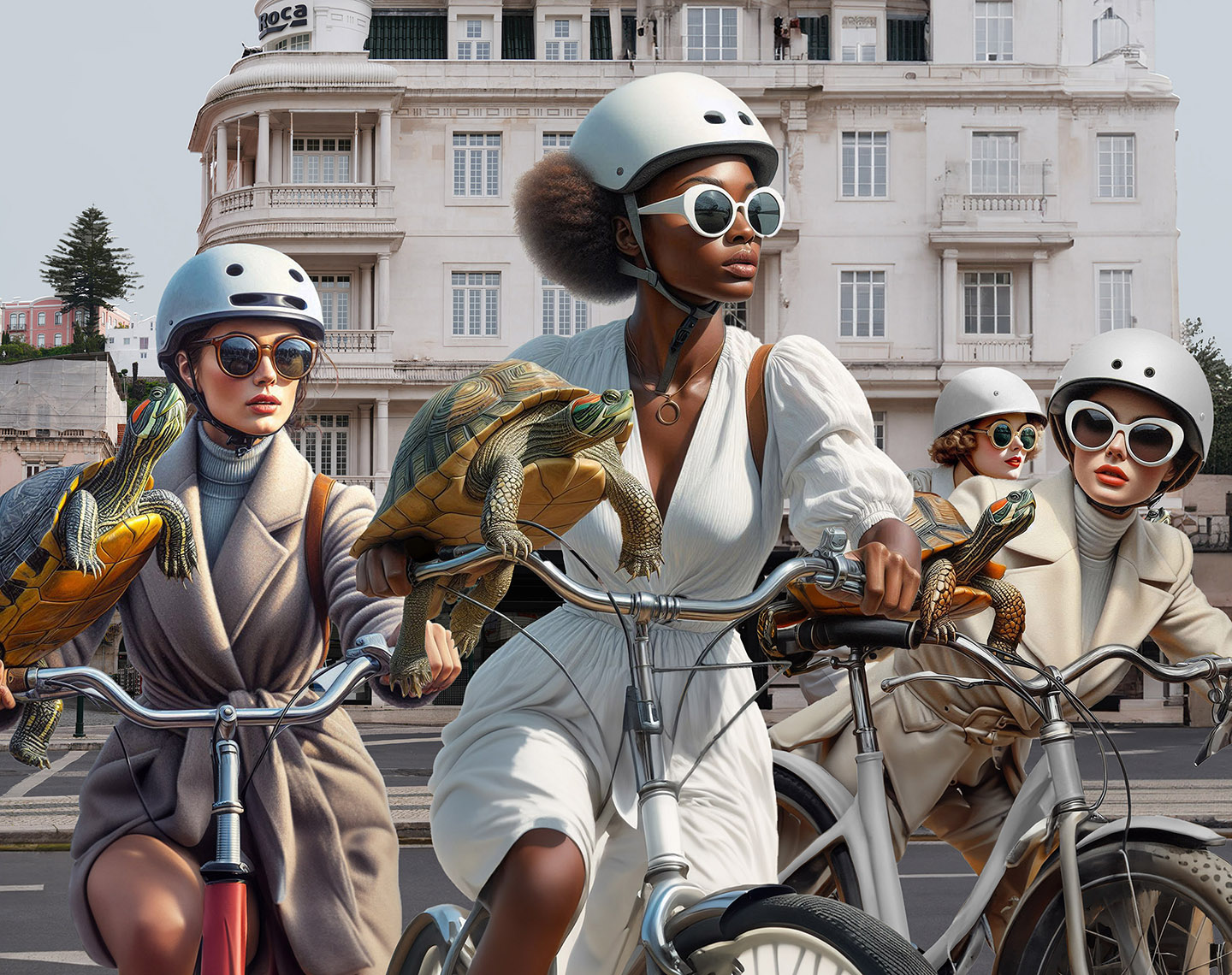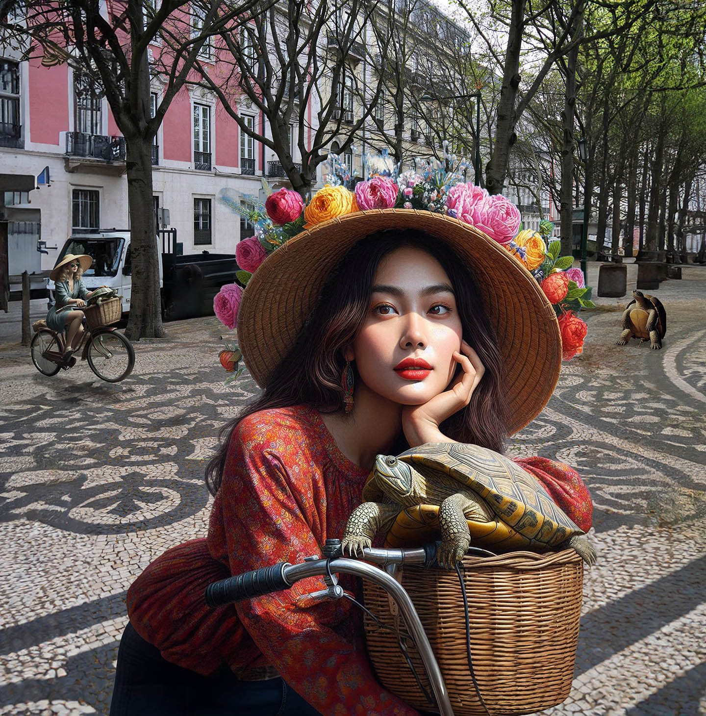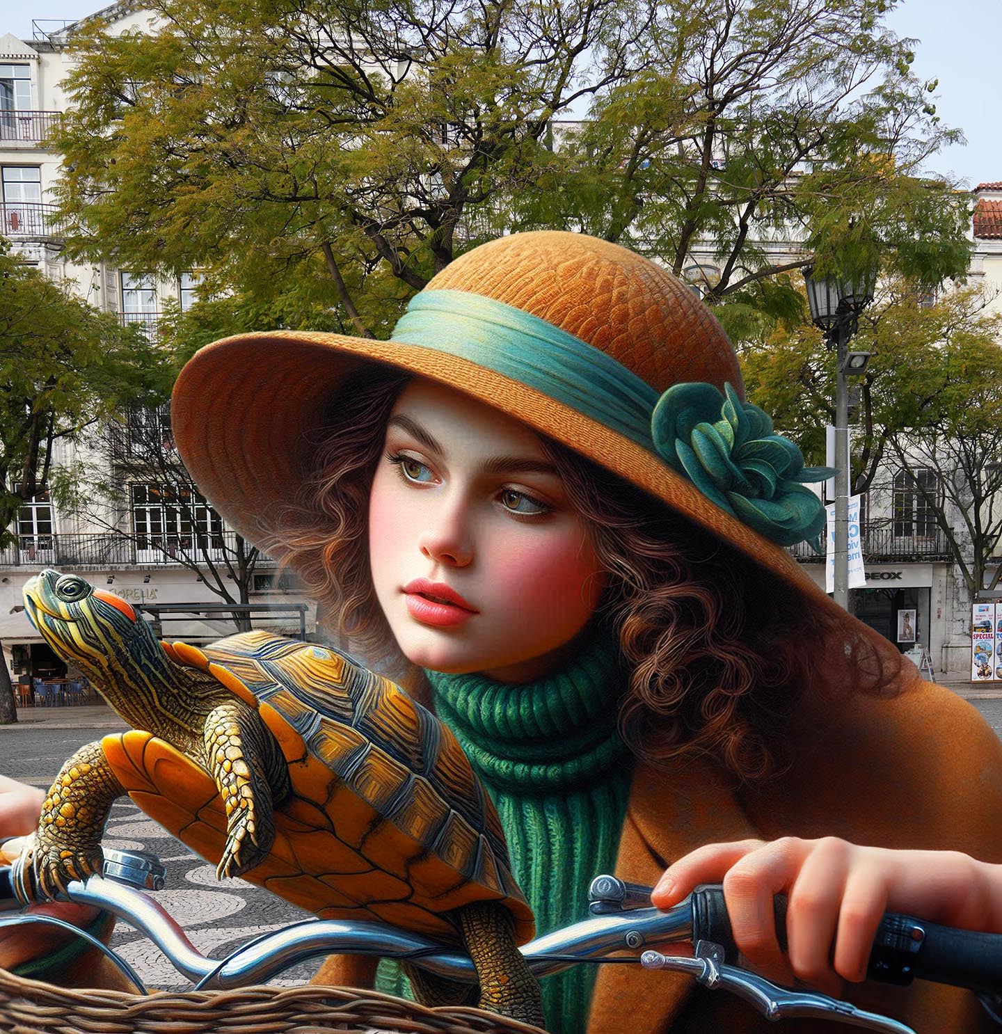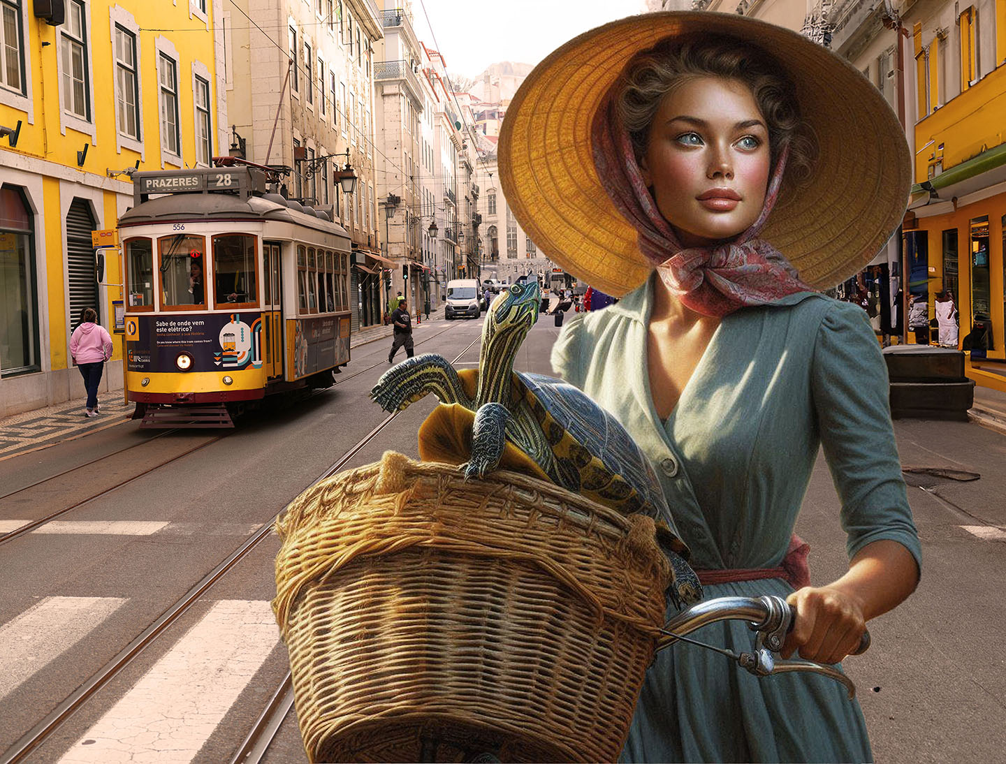 Sisters of the Magic Turtle - episode 9 : Lisbon 25" X 36" Photo/Computer Illustration - BING AI Image Generator - Inkjet Print