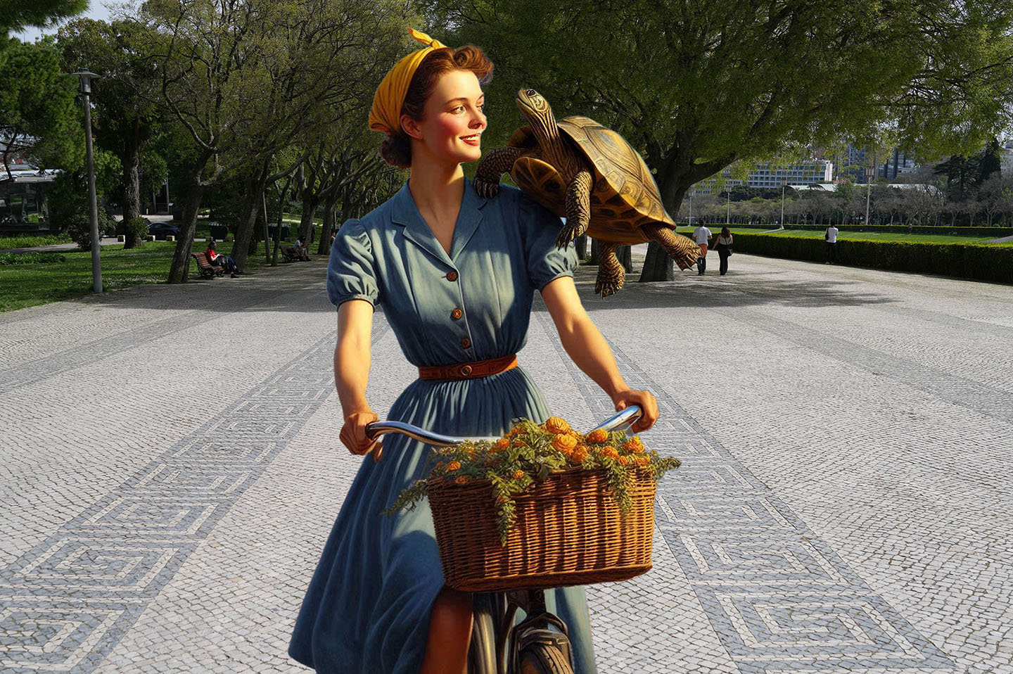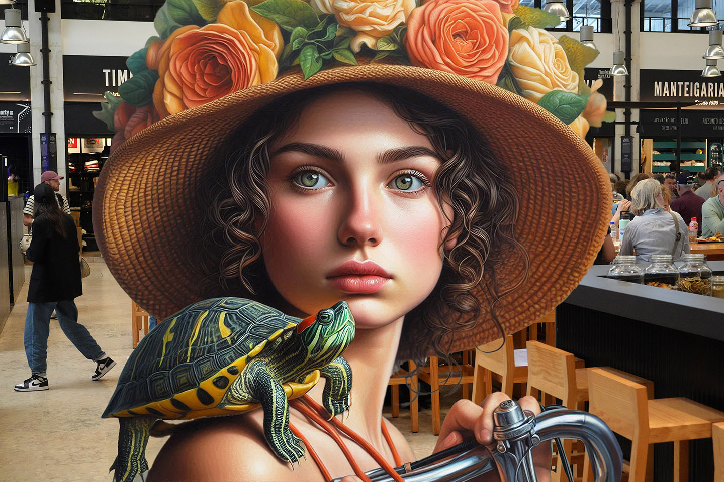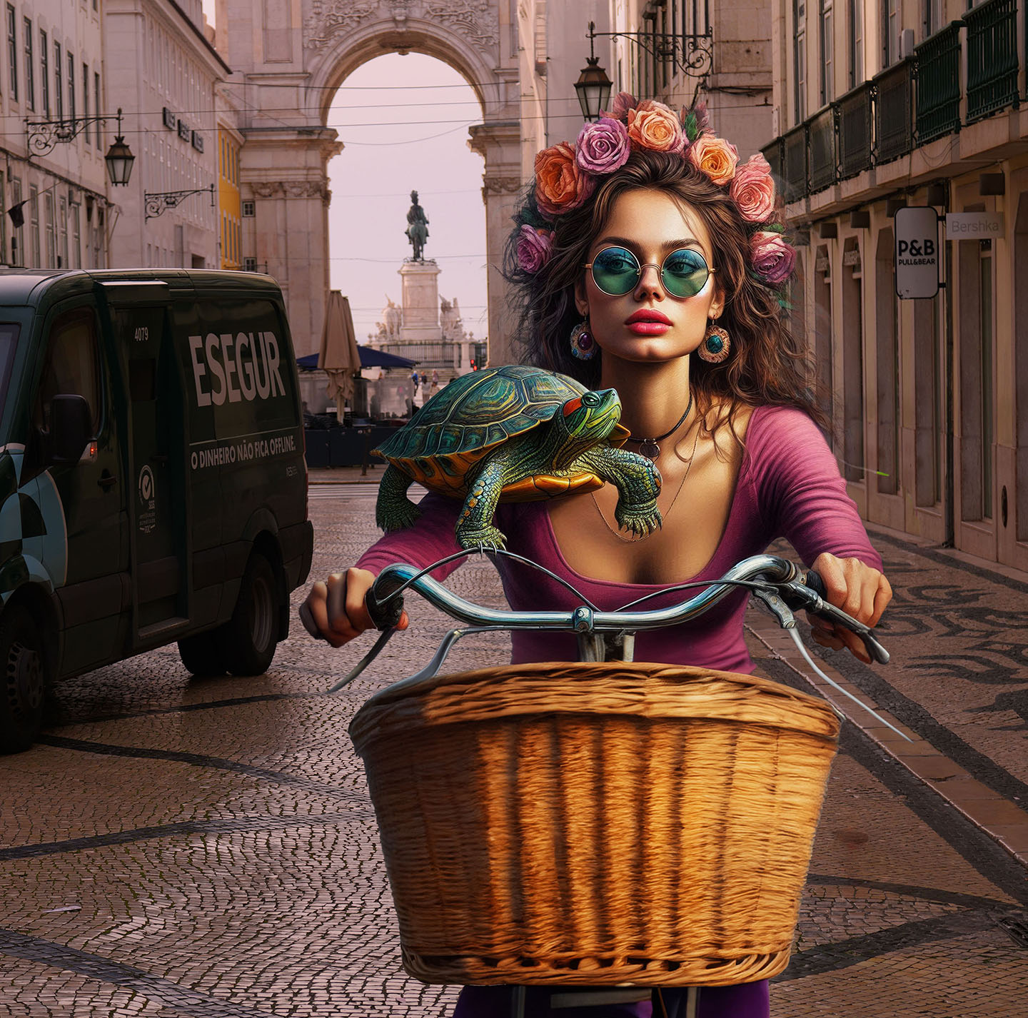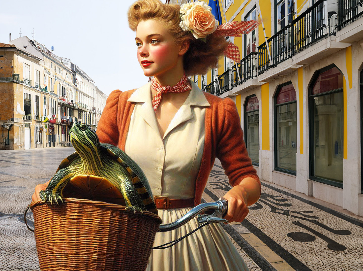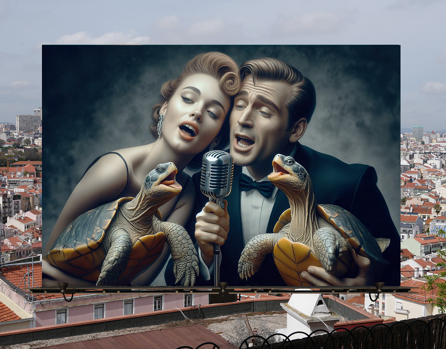 Sisters of the Magic Turtle - episode 9 : Lisbon 25" X 36" Photo/Computer Illustration - BING AI Image Generator - Inkjet Print