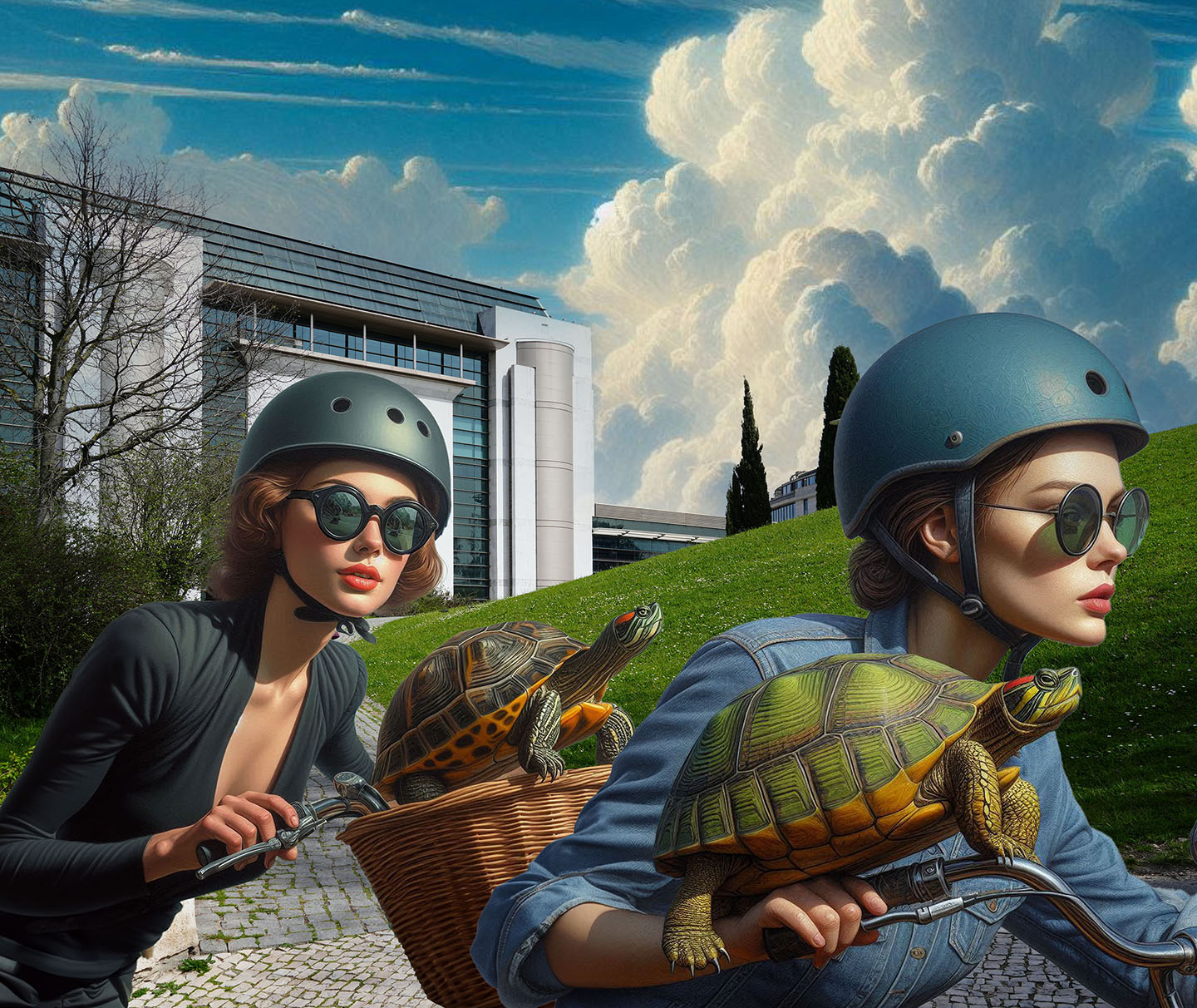 Sisters of the Magic Turtle - episode 10 : into the Future 23" X 28" Photo/Computer Illustration - BING AI Image Generator - Inkjet Print