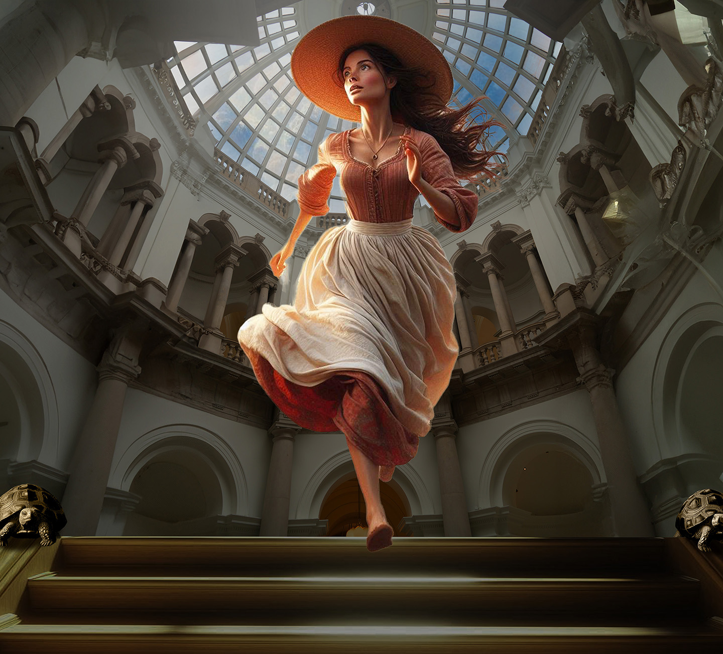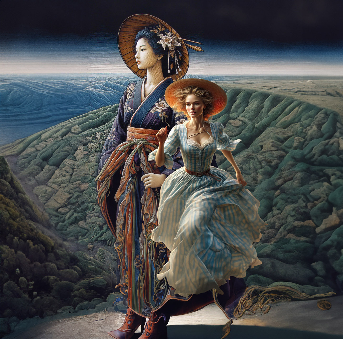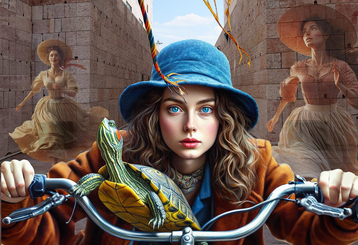 Sisters of the Magic Turtle - episode 11 : the Lady on the Book Cover 25" X 36" Photo/Computer Illustration - BING AI Image Generator - Inkjet Print
