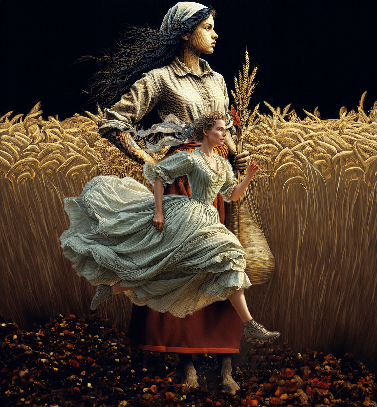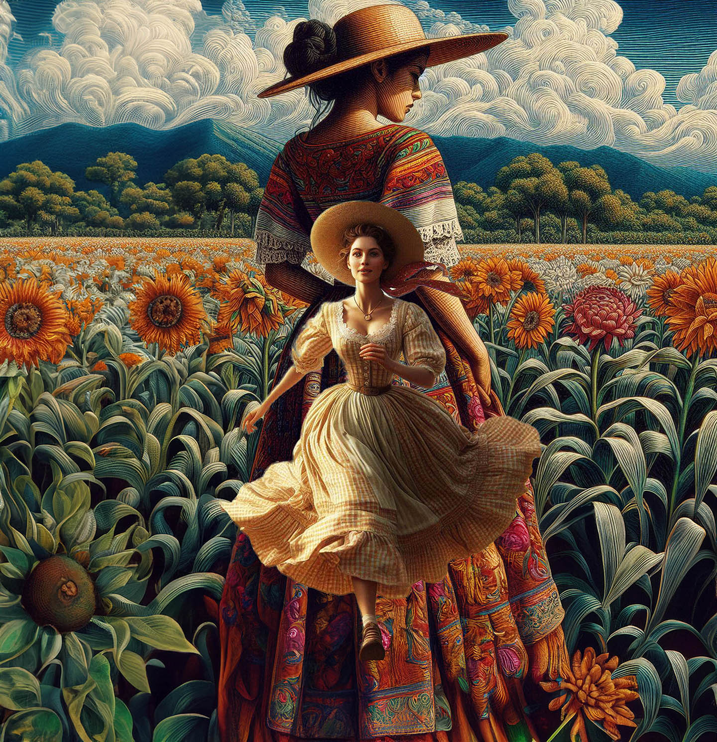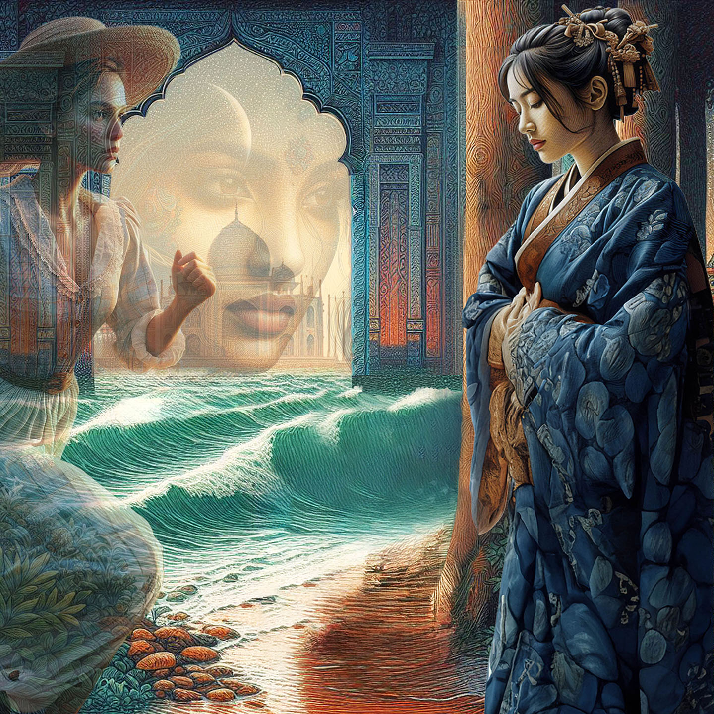 Sisters of the Magic Turtle - episode 11 : the Lady on the Book Cover 25" X 36" Photo/Computer Illustration - BING AI Image Generator - Inkjet Print