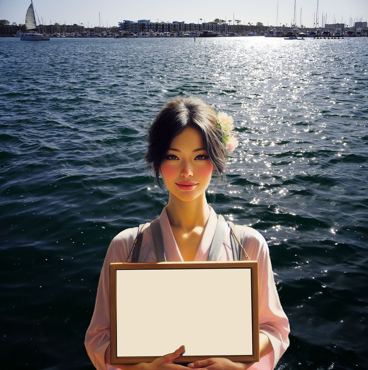 Marina del Rey 30" X 30" Photo/Computer Illustration - BING AI Image Generator - Inkjet Print