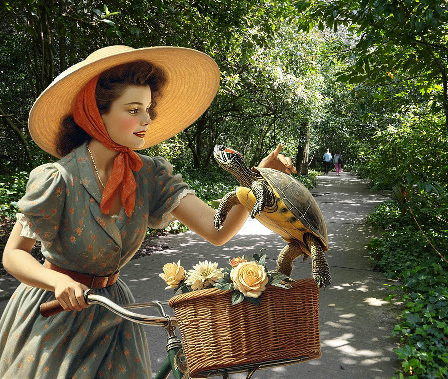 Sunday - Lady Bike 26 30" X 30" Photo/Computer Illustration - BING AI Image Generator - Inkjet Print